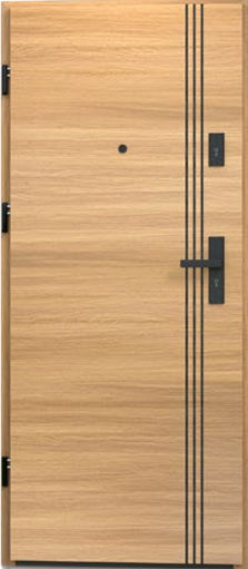 | Wyposażenie | Cena modelu zawiera zestaw dodatków. W jego skład wchodzą dwa niezależne zamki trójbolcowe (główny i pomocniczy), bolce antywyważeniowe, wizjer, zawiasy 3D, próg oraz system uszczelek. |