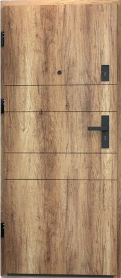 KR Center Bastion Interior LUX-404 to ekskluzywne drzwi wejściowe, które łączą nowoczesny design z najwyższą jakością wykonania. Skrzydło drzwiowe wykonano z trwałej płyty wiórowej, oklejonej frezowaną płytą MDF i pokrytej folią PVC, przy zastosowaniu technologii eliminującej łączenia na krawędziach przylgi. Dzięki temu okleina pozostaje nienaruszona, a drzwi zyskują elegancki i dopracowany wygląd. Model LUX-404 wyróżnia się również podwyższoną izolacją akustyczną, odpornością na codzienne użytkowanie i harmonijnym wzornictwem, które doskonale komponuje się w luksusowych i nowoczesnych wnętrzach.